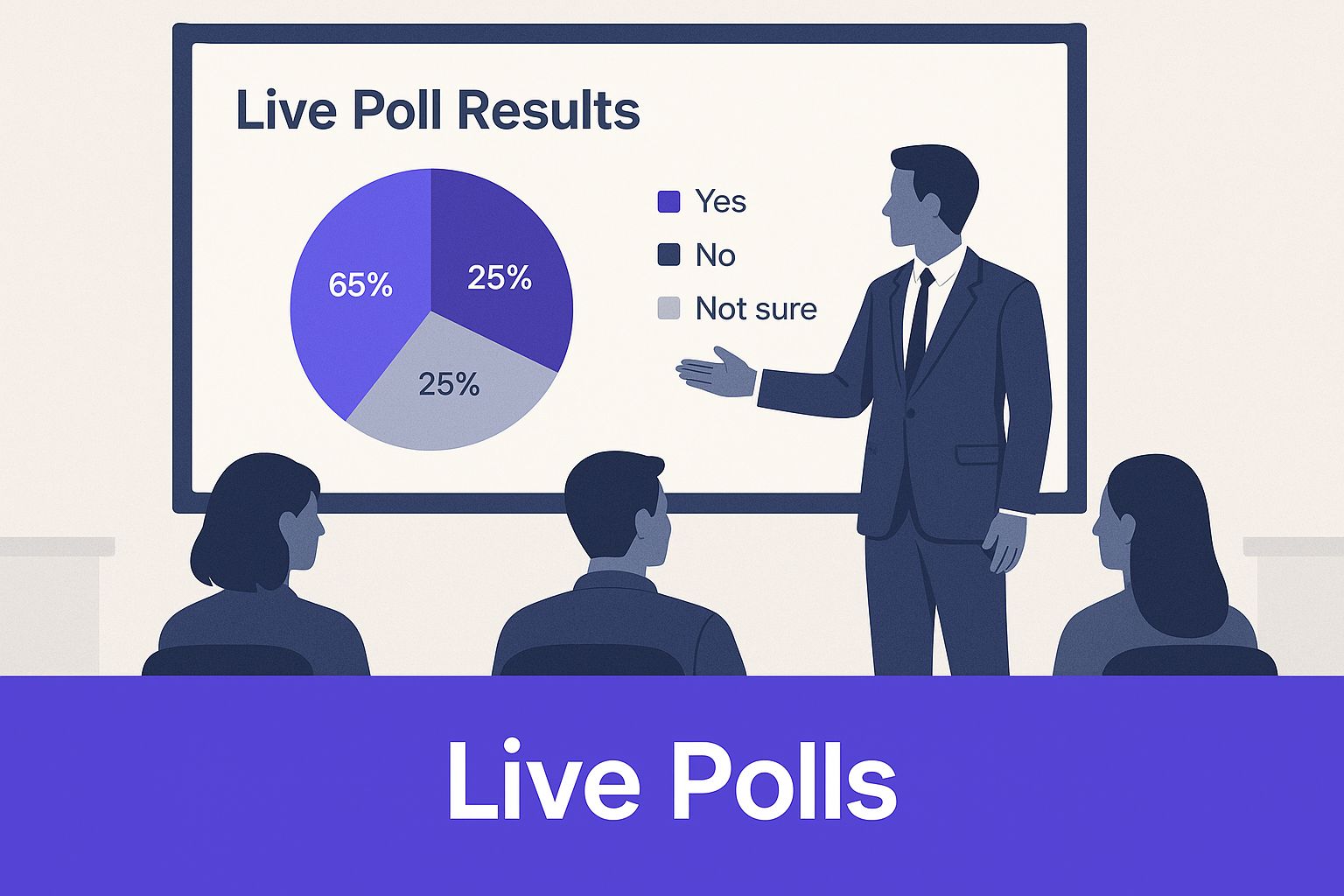 The infographic above shows a presenter using live polls during a presentation. It highlights the visual impact of real-time audience interaction and demonstrates how easily interactive tools can fit into professional settings. These tools transform audience members into active participants, boosting engagement and creating a more dynamic presentation. Let's explore some specific tools that can help you achieve these results.